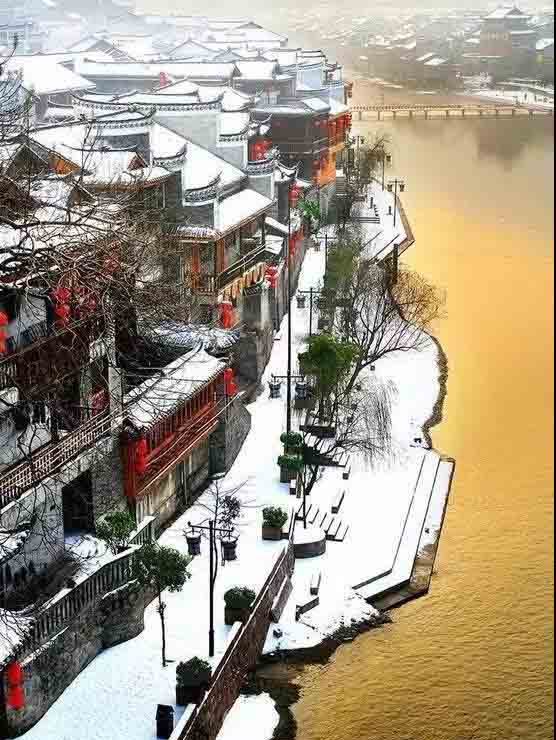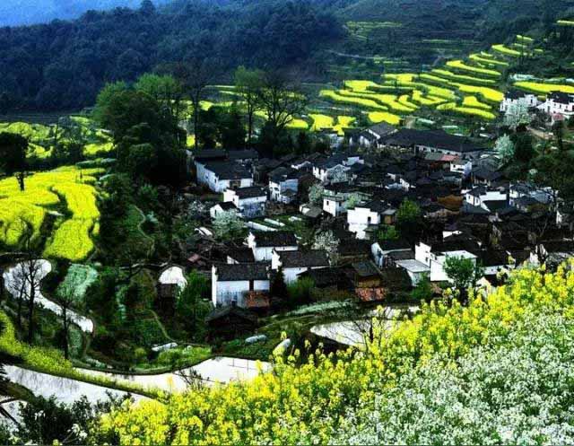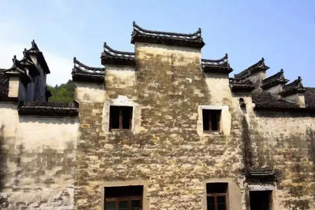 灰瓦白墻和高大的門樓,門樓墻壁有精致的雕花,屋頂?shù)牡窕ǜ鼮榫旅利悾麄€(gè)建筑里有一套貫通的水系,再加上綠樹成陰、群山呼應(yīng),讓你有種置身仙境感。